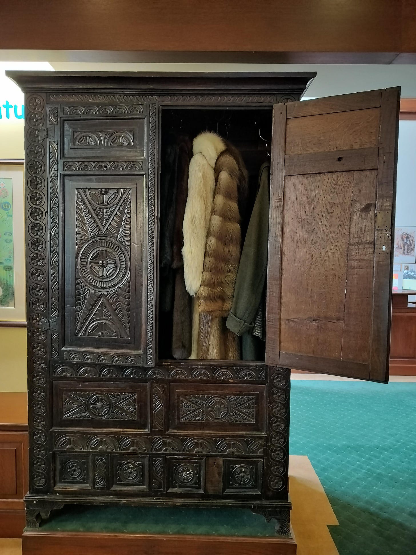 This is the actual wardrobe made by C.S. Lewis’s grandfather, the one he and his brother would play inside and that inspired The Lion, the Witch, and the Wardrobe! One of the coats inside belonged to his brother.