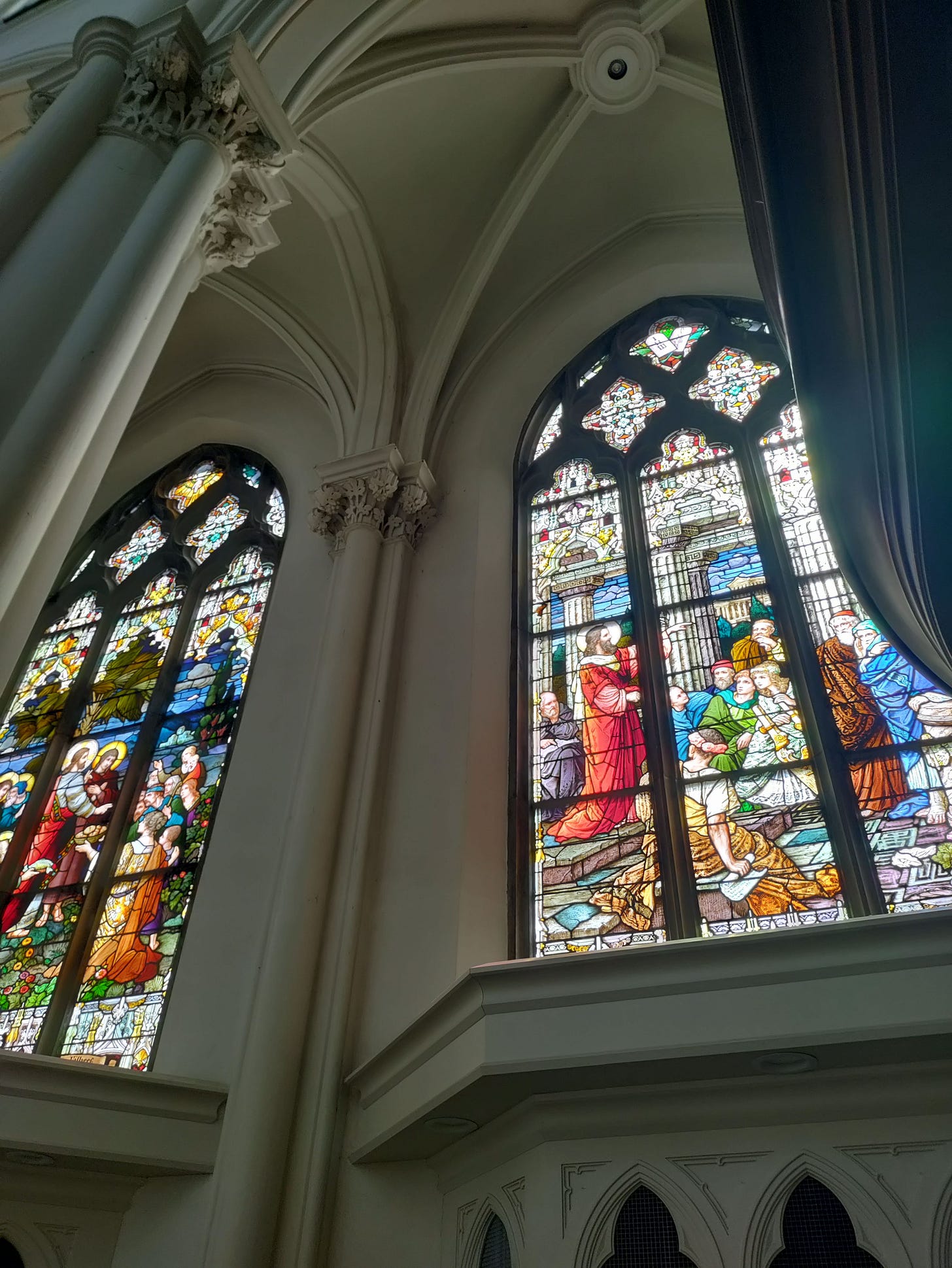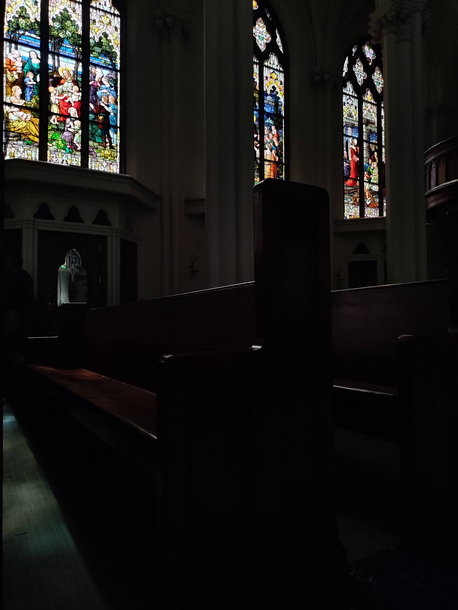 This building also houses the largest amount of stained glass anywhere in North America—quite a God moment that I chose this church for the story, because I had no idea at the time. But the reason they stopped here was because Channing wanted to look at stained glass, and this happened to be on their route! More about the basilica’s history and architecture can be found here at their website.